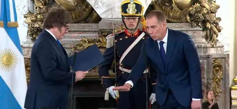 Fue un acto breve en el Salón Blanco de la Casa Rosada. No hubo discursos ni palabras de agradecimiento. Solo la toma de juramento del Presidente y un abrazo efusivo con Santilli, quién el viernes renuncia a su banca para poder asumir. Estuvieron presentes los ministros del Poder Ejecutivo, la Secretaria General de la Presidencia, Karina Milei, y el presidente de la Cámara de Diputados, Martín Menem. También los hijos de Santilli y su esposa.