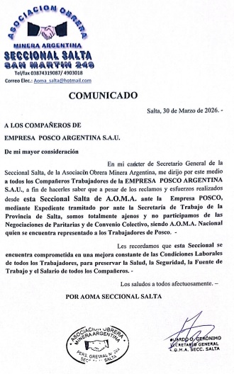 Trabajadores de POSCO Argentina CP1 (Salta) y CP2 (Catamarca) denuncian a la empresa por salarios que no están acordes a otras mineras.